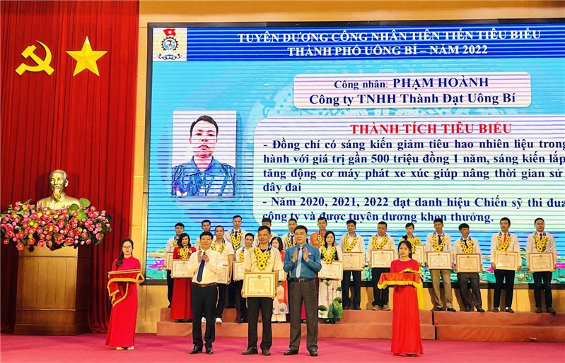 Năm 2022, bám sát chỉ đạo của Thành uỷ, LĐLĐ tỉnh Quảng Ninh, LĐLĐ thành phố Uông Bí đã phát động và triển khai sâu rộng các phong trào thi đua trong CNVCLĐ, trọng tâm là phong trào thi đua: "Lao động giỏi, Lao động sáng tạo" gắn với phong trào "Công nhân tiên tiến tiêu biểu", với mục tiêu: Năng suất, chất lượng, hiệu quả; phong trào “Xanh - Sạch - Đẹp; bảo đảm an toàn, vệ sinh lao động”; phong trào "Doanh nghiệp giỏi", phong trào “Học tập nâng cao trình độ, năng lực, tay nghề CNVCLĐ. Thông qua các phong trào thi đua, thành phố đã có 1.374 sáng kiến, giải pháp, đề tài được công nhận với tổng giá trị làm lợi 8,6 tỷ đồng; có 262 công nhân tiêu biểu đã được các cấp tuyên dương, khen thưởng...