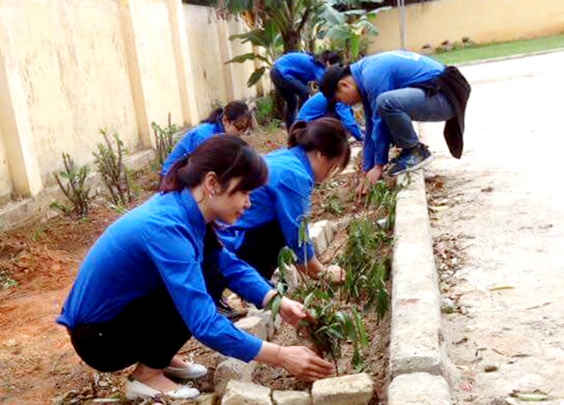 Nhằm xanh hóa đô thị, năm nay TP Uông Bí sẽ tiếp tục huy động nguồn lực từ nhân dân tham gia trồng cây xanh. (Trong ảnh, ĐVTN TP Uông Bí trồng cây xanh khu vực khu 7, phường Thanh Sơn)