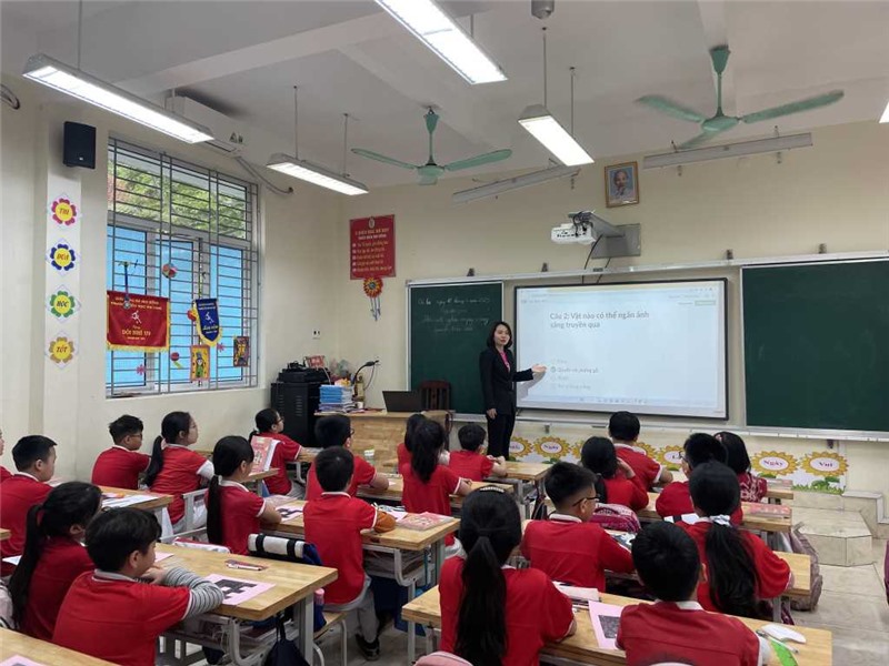 Một tiết học của học sinh Trường Tiểu học Hạ Long có sự hỗ trợ của bảng thông minh. Ảnh: Lan Anh