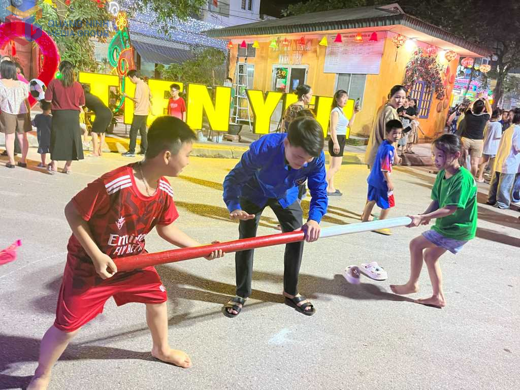 Huyện Đoàn Tiên Yên tổ chức trò chơi dân gian cho trẻ em tại phố đi bộ, thị trấn Tiên Yên (huyện Tiên Yên).