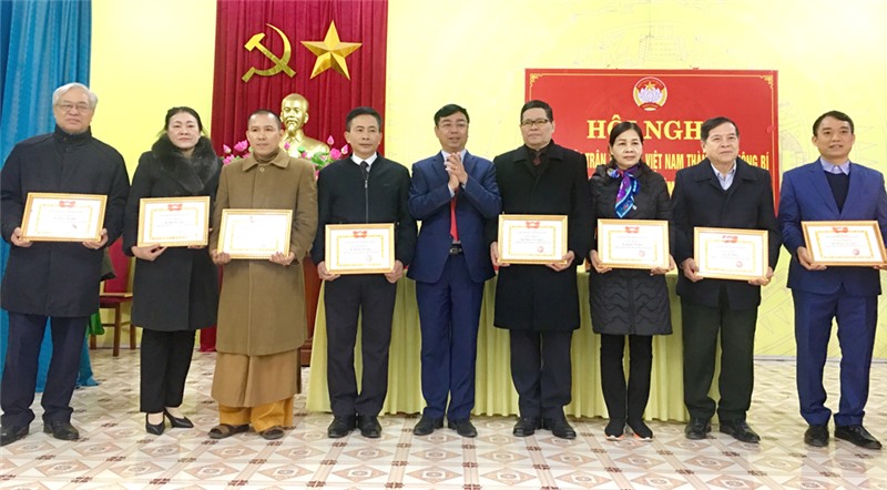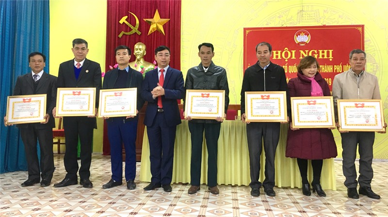 Đồng chí Đào Ngọc Sơn, UVBTV, Trưởng Ban Dân vận Thành uỷ, Chủ tịch MTTQ thành phố trao bằng khen của Uỷ ban MTTQ tỉnh.
