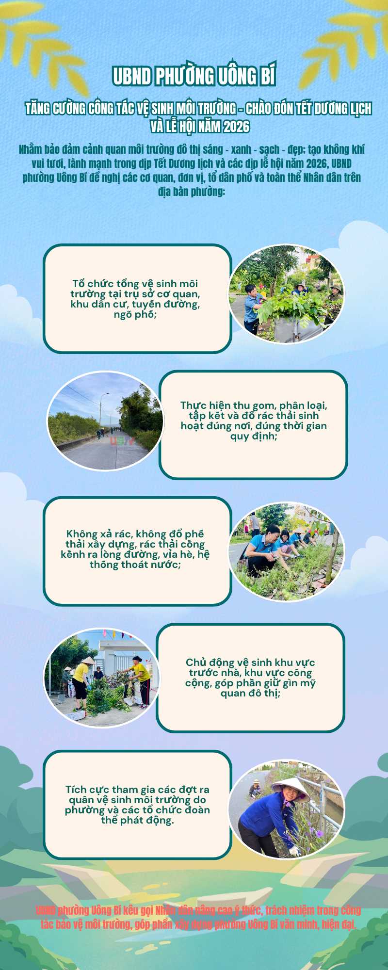 ỦY BAN NHÂN DÂN PHƯỜNG UÔNG BÍ: TUYÊN TRUYỀN CÔNG TÁC VỆ SINH MÔI TRƯỜNG CHÀO ĐÓN TẾT DƯƠNG LỊCH VÀ CÁC DỊP LỄ HỘI NĂM 2026