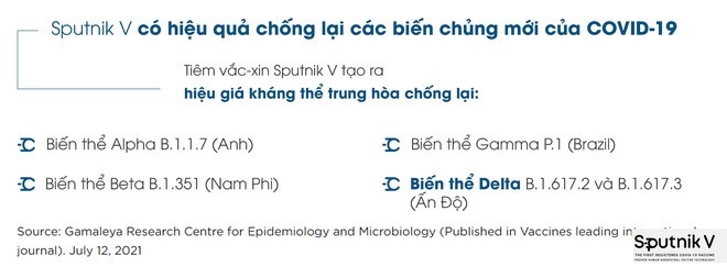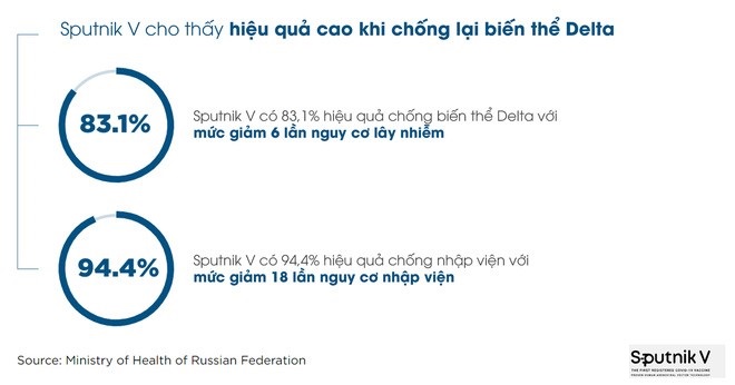 Trước đó vào đầu tháng 8, hãng tin nhà nước RT của Nga dẫn nguồn từ RDFI cho biết hiệu quả dịch tễ học của vaccine Sputnik V đối với biến thể Delta là 83,1%. Hai liều vaccine Sputnik V có khả năng chống lại 94,37% các ca nhiễm biến thể Delta nặng phải nhập viện.