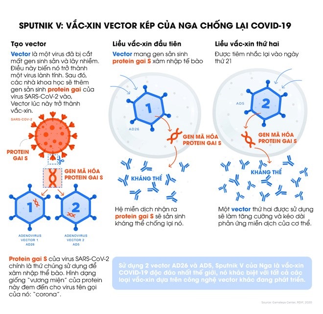 Khi quyết định phát triển vaccine COVID-19 theo công nghệ vector virus, các nhà khoa học Nga đã tham chiếu tới hơn 70 nghiên cứu và 250 thử nghiệm lâm sàng chứng minh sự an toàn của công nghệ này.