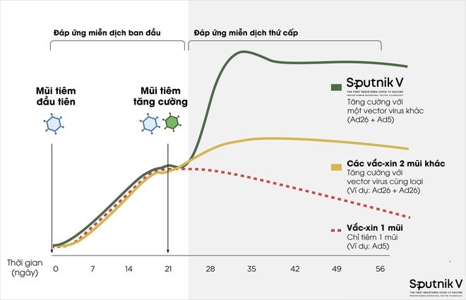 Vậy nên thực chất có thể coi hai liều vaccine Spunik V là 2 loại vaccine khác nhau hoặc một loại vaccine kép. Các nhà khoa học Nga gọi đó là một sự kết hợp đột phá, độc đáo và duy nhất trên toàn cầu. Theo họ, việc tiêm một vaccine khác loại ở mũi thứ hai sẽ giúp hệ miễn dịch củng cố khả năng nhận diện và chống lại virus SARS-CoV-2.