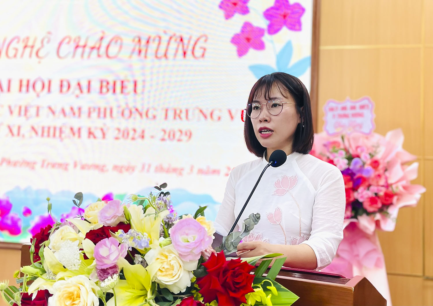 Đại diện MTTQ phường báo cáo kết quả Đại hội đại biểu MTTQ phường lần thứ XI, nhiệm kỳ 2024-2029.