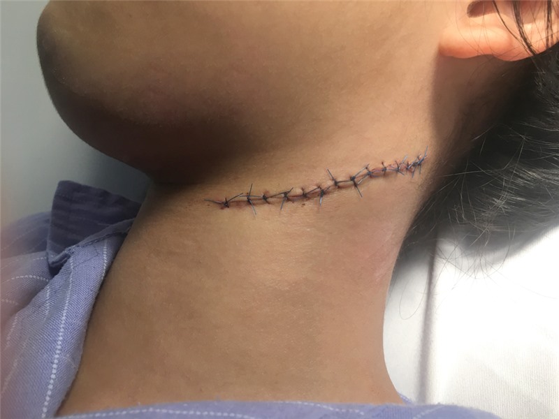 Khi bác sỹ tiến hành phẫu thuật cho bệnh nhi nhận thấy, vết thương vùng cổ trái dài 10cm, gây đứt cơ đòn chũm trái, lộ động mạch cảnh ngoài và rất may mắn là chưa gây tổn thương đến động mạch. Bệnh nhi đã được rửa sạch vết thương, khâu cầm máu. Hiện tại sức khỏe bệnh nhi ổn định, vết mổ khô.
