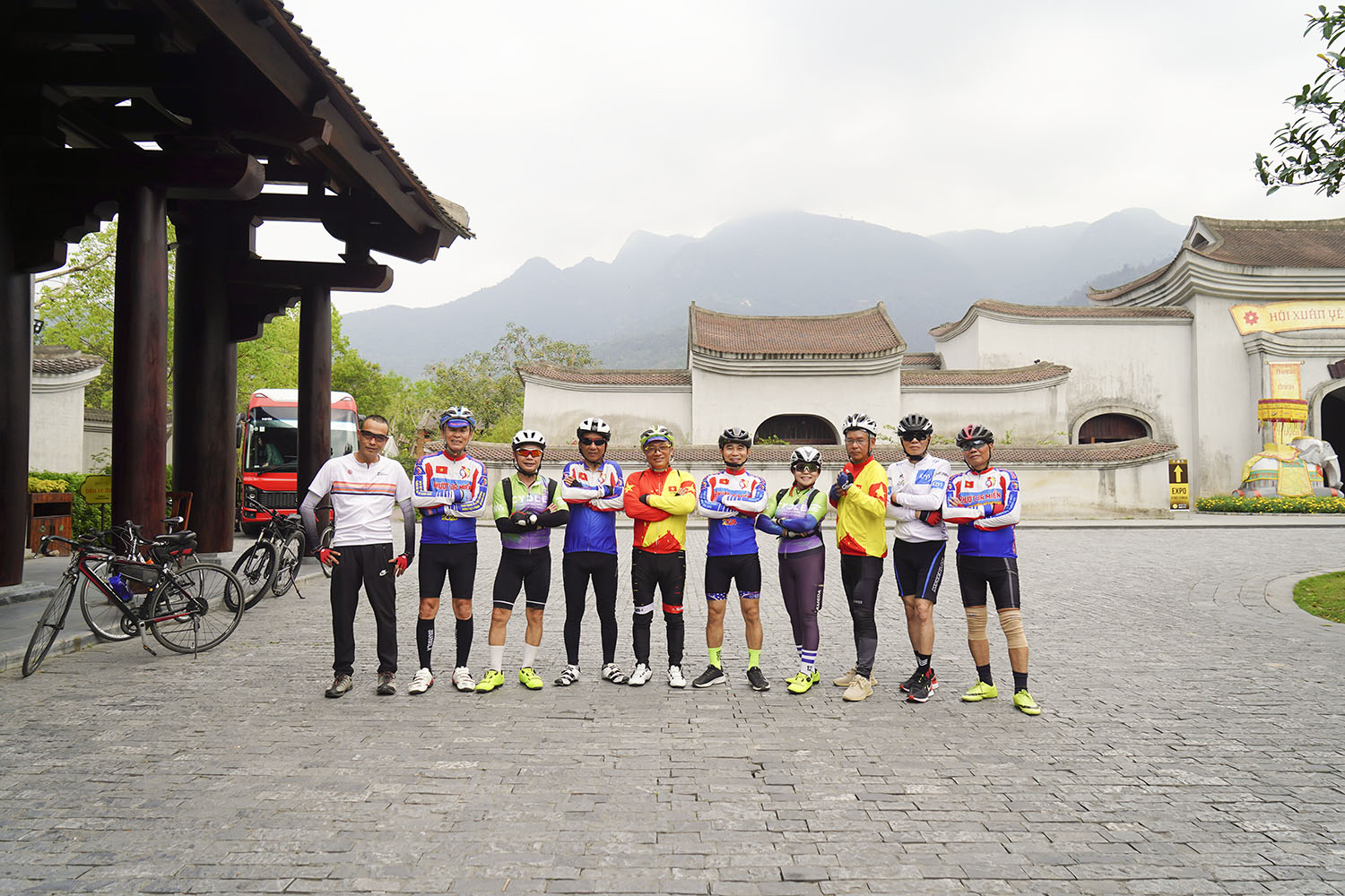 Các thành viên CLB xe đạp thể thao Hải Đăng (Hải Phòng) checkin tại Yên Tử trước giờ diễn ra giải.