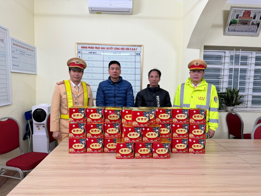 Đội CSGT đường bộ số 3 bắt giữ các đối tượng chở thuốc nổ và pháo trái phép. Ảnh: Phòng PC08 (Công an tỉnh) cung cấp