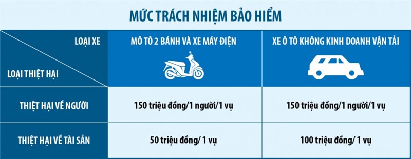 Bảo hiểm TNDS đối với ô tô, xe máy không phải là loại hình bảo hiểm thương mại mà được xem là chính sách an sinh xã hội của Chính phủ. Ý nghĩa nhân đạo của chính sách này là bảo đảm nguồn hỗ trợ đủ lớn và kịp thời cho các nạn nhân tai nạn giao thông mà không phụ thuộc vào việc người gây tai nạn có khả năng chi trả hay không. Đây là bảo hiểm chi trả cho bên thứ ba chứ không phải trả cho người mua bảo hiểm và được thế giới đánh giá là chính sách an sinh - xã hội cần thiết. Mức bồi thường đối với thiệt hại về người là 150 triệu đồng/người/vụ; đối với thiệt hại về tài sản là 50 triệu đồng/vụ. Nếu xe gây tai nạn là ô tô, mức bồi thường đối với thiệt hại về tài sản lên đến 100 triệu đồng/vụ.