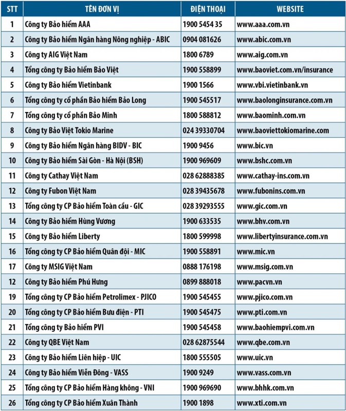 Danh sách các doanh nghiệp cung cấp bảo hiểm TNDS bắt buộc được cơ quan chức năng chấp thuận: