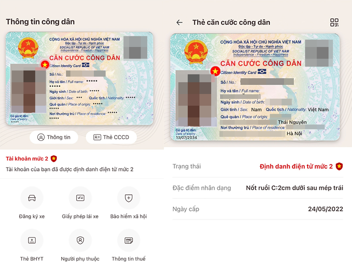 Đầu tháng 4, khi làm Căn cước công dân gắn chip, một công dân ở quận Nam Từ Liêm, Hà Nội, đăng ký xác thực tài khoản định danh điện tử mức 2 và đã được phê duyệt. Bởi thế, khi tải ứng dụng VNeID, anh chỉ cần đăng nhập bằng mã số Căn cước công dân và số điện thoại là thành công. Truy cập ứng dụng, anh thấy hiện luôn Căn cước công dân gắn chíp và các giấy tờ đã tích hợp trên app.