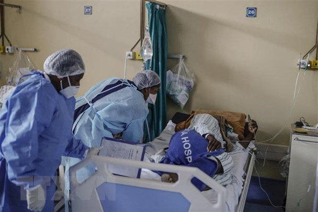 Nhân viên y tế điều trị cho bệnh nhân COVID-19 ở Tembisa, Nam Phi. (Ảnh: AFP/TTXVN)