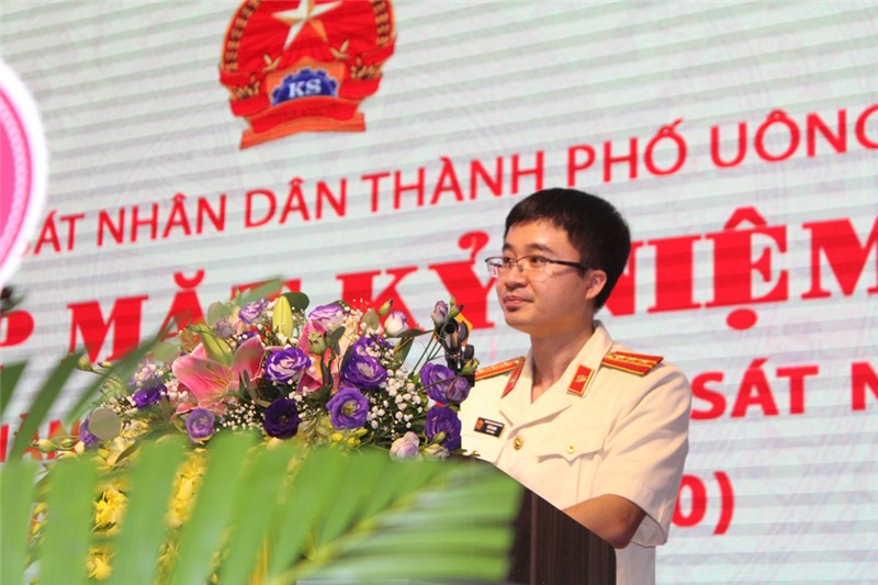 Đồng chí Vũ Đức Ninh, Viện trưởng Viện Kiểm sát nhân dân thành phố Uông Bí phát biểu tại chương trình.
