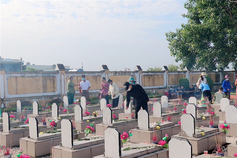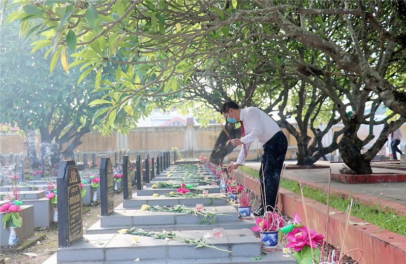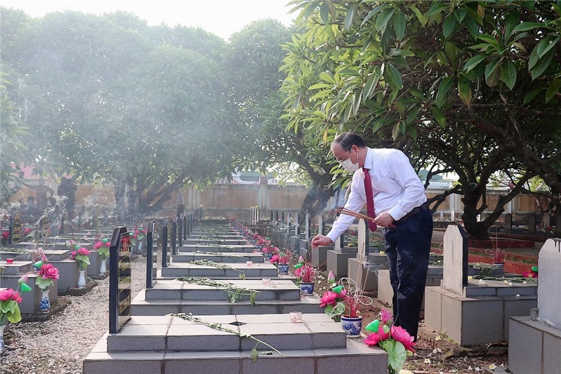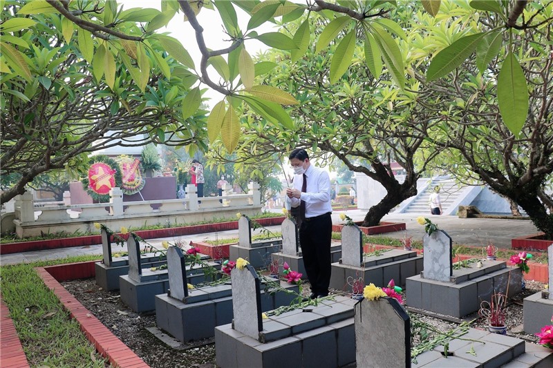 Các đại biểu và Nhân dân dâng hương tại phần mộ các liệt sĩ.