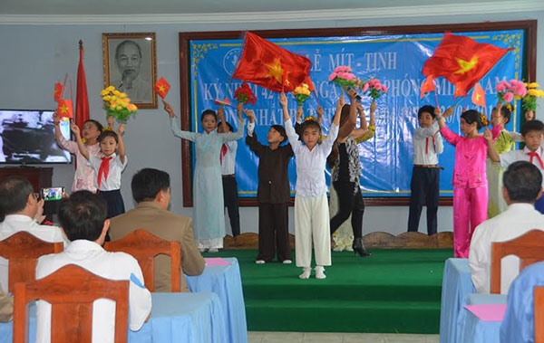 Bài hát “Như có Bác Hồ trong ngày vui đại thắng” do các em học sinh trường tiểu học Hữu nghị Khmer-Việt Nam Tân Tiến biểu diễn hòa trong tiếng hát vang của các đại biểu đã khép lại lễ mít tinh trong không khí vui tươi, trang trọng.