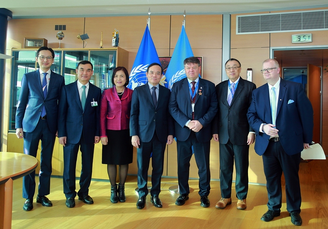 Phó Thủ tướng Trần Lưu Quang gặp Tổng Thư ký Tổ chức Khí tượng thế giới Petteris Taalas (thứ 5 từ trái sang) - Ảnh: VGP/Hải Minh