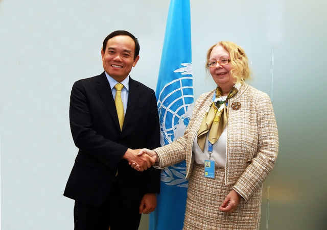 Phó Thủ tướng cũng đề nghị Chủ tịch Đại hội đồng ủng hộ Việt Nam thực hiện các cam kết khí hậu qua việc điều phối nỗ lực nhằm kêu gọi các nước phát triển dành nguồn lực thích đáng cho tài chính khí hậu, chuyển giao công nghệ và hỗ trợ thích ứng biến đổi khí hậu.