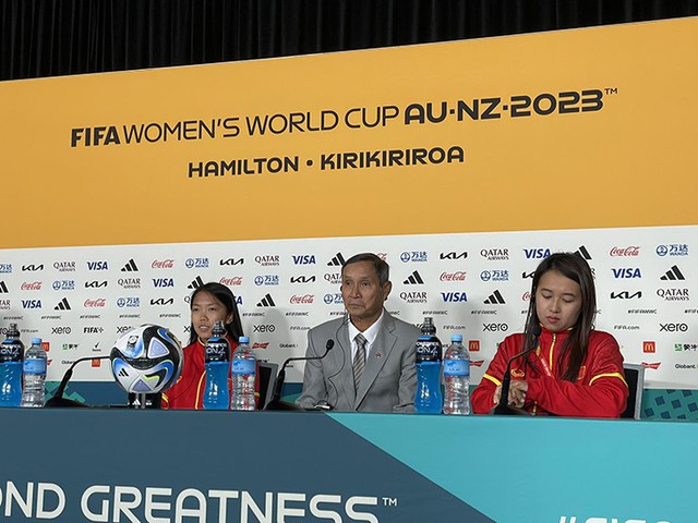 HLV Mai Đức Chung và Đội trưởng Huỳnh Như tại họp báo - Nguồn ảnh: 24h.com.vn