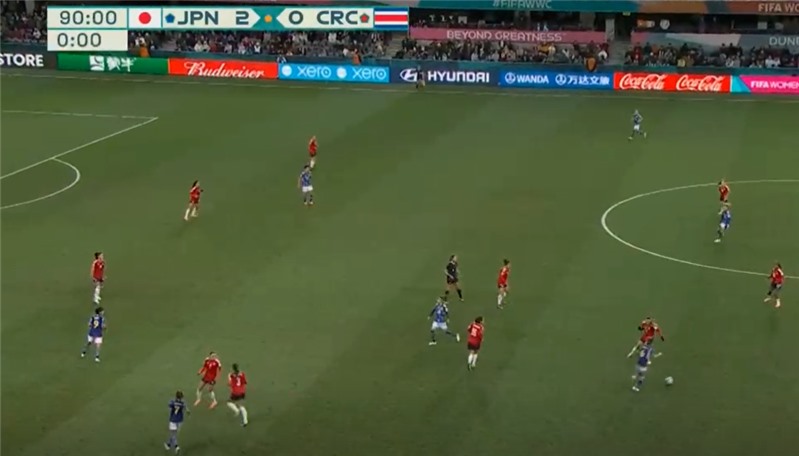 Thắng Costa Rica lượt trận thứ 2 vòng bảng, ĐT nữ Nhật Bản (áo xanh) là đội đầu tiên giành được vé vào vòng 16 đội tại World Cup 2023 - Ảnh cắt từ video