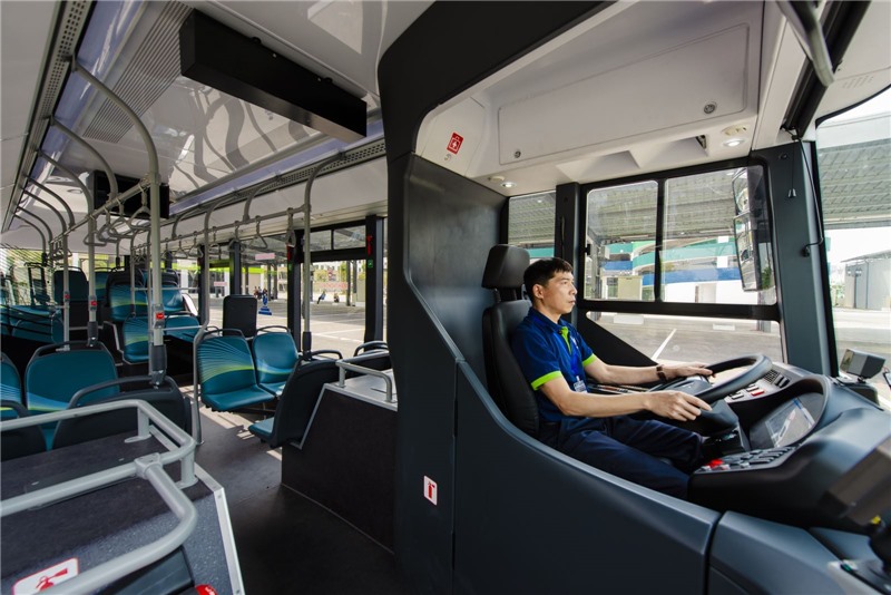 Xe có hệ thống tự động kiểm soát hành vi của người lái, cảnh báo những nguy cơ gây mất an toàn; chế độ tự động hạ thấp thân xe khi lên xuống phù hợp với người già, trẻ em, người khuyết tật, phụ nữ mang thai...; bảng điện tử thông báo điểm dừng sắp tới; wifi miễn phí, cổng sạc USB, màn hình giải trí và hệ thống camera an ninh và kiểm soát hành trình, cảnh báo lùi, quan sát khi dừng đỗ...