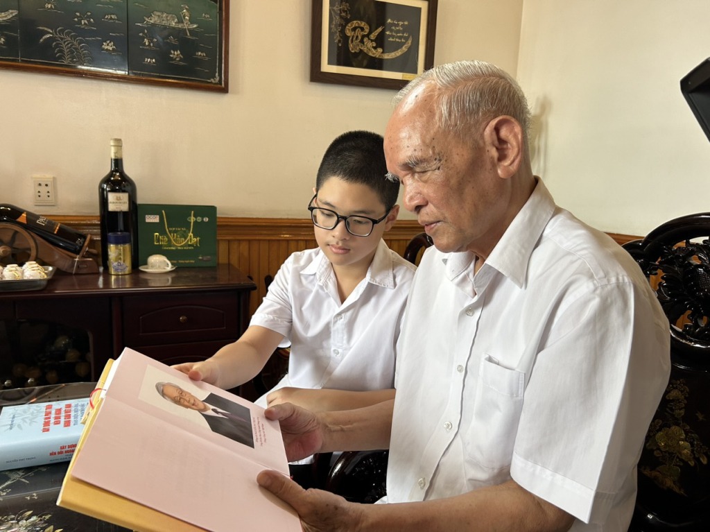 Một đảng viên lão thành cùng gia đình đọc cuốn sách về Tổng Bí thư Nguyễn Phú Trọng.