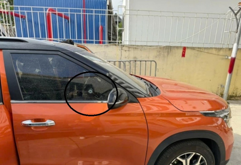 Xe ô tô của nạn nhân bị đạn bắn xuyên qua kính cửa.