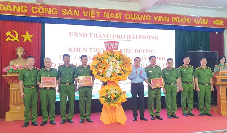 | Liên quan đến vụ án nói trên, chiều 28/10, ông Lê Khắc Nam – Phó Chủ tịch UBND TP. Hải Phòng đã đại diện lãnh đạo thành phố khen thưởng, biểu dương lực lượng phá án. Tại buổi biểu dương, Phó Chủ tịch UBND TP. Hải Phòng đã trao thưởng cho Công an quận Lê Chân 40 triệu đồng, Phòng cảnh sát Hình sự 40 triệu đồng, Phòng Kỹ thuật Hình sự 20 triệu đồng. |