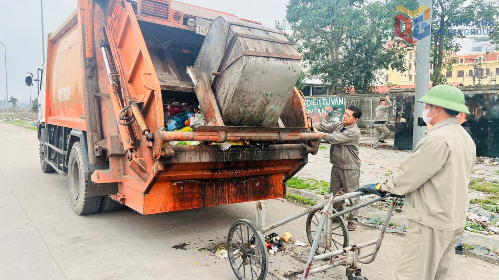 Anh Nguyễn Duy Diên (người thao tác ép rác), công nhân Công ty CP Môi trường và Công trình đô thị Uông Bí được gọi là “người anh cả” mẫu mực của công nhân trong công ty.