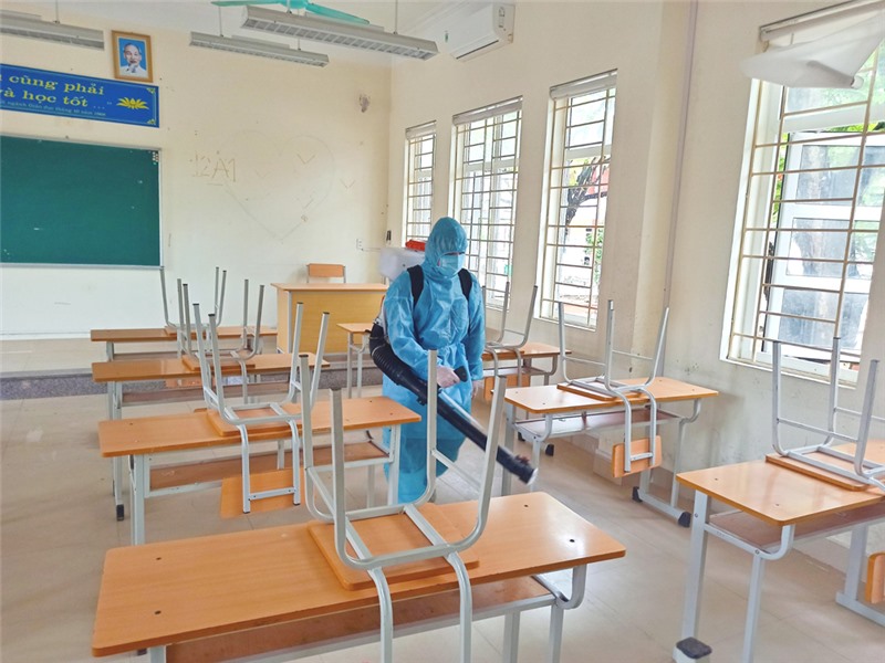 Khử khuẩn, đảm bảo vệ sinh, an toàn phòng dịch tại các phòng thi. Ảnh: Tư liệu.