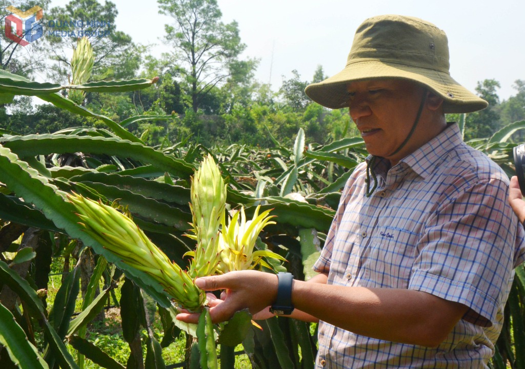 Chúng tôi theo ông len lỏi giữa những hàng thanh long dưới cái nắng nóng gắt. Ông dừng lại bên một trụ cây, chỉ vào những cành khỏe, tán rộng, giải thích tỉ mỉ cách nhận biết bộ rễ phát triển tốt. Mồ hôi lấm tấm trên trán, nhưng ông vẫn kiên nhẫn, như đang kể về những “đứa con” của mình.