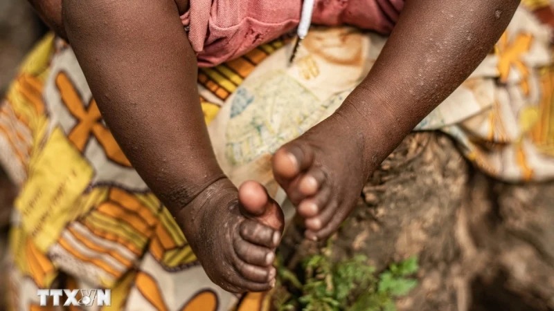 Em nhỏ mắc đậu mùa khỉ được điều trị tại Nyiragongo, Bắc Kivu, Cộng hòa Dân chủ Congo. (Ảnh: THX/TTXVN)