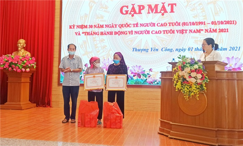 Tại Chương trình gặp mặt, lãnh đạo địa phương và lãnh đạo Hội NCT xã đã trao chứng nhận mừng thọ cho 13 cụ. Đồng thời, xã cũng trao 26 suất quà cho 26 NCT có hoàn cảnh khó khăn.