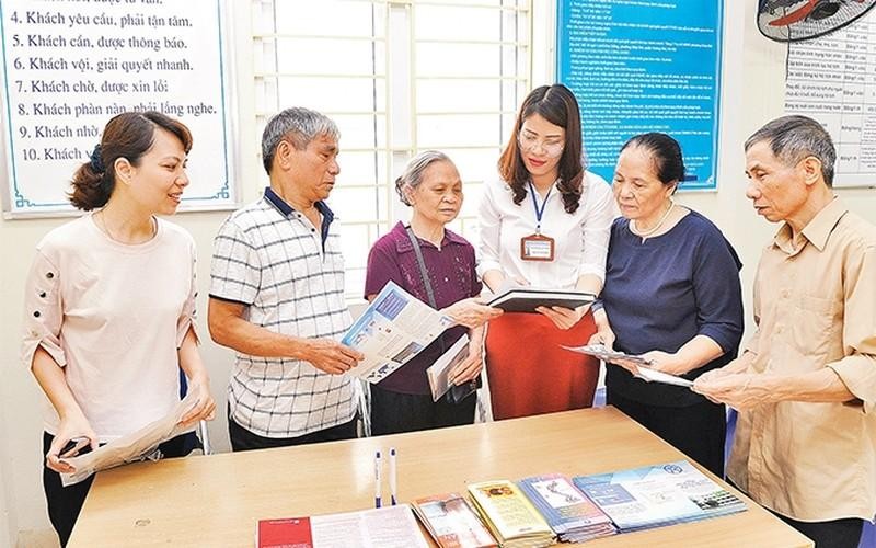 Cán bộ UBND phường Giáp Bát, quận Hoàng Mai (Hà Nội) tiếp xúc, đối thoại, giải quyết các kiến nghị, bức xúc của nhân dân. (Ảnh: ÐĂNG KHOA)