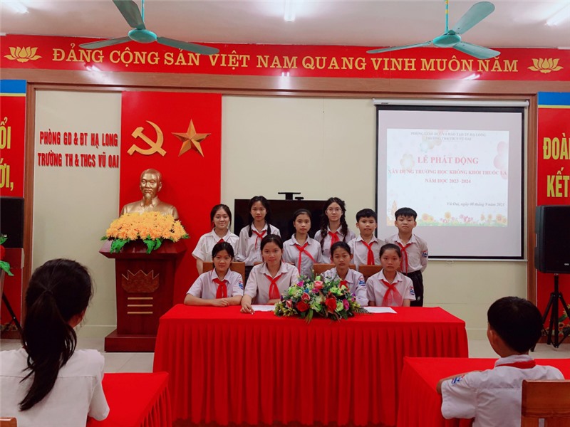Trường TH&THCS Vũ Oai (TP Hạ Long) phát động “Xây dựng trường học không khói thuốc lá” năm học 2023-2024.