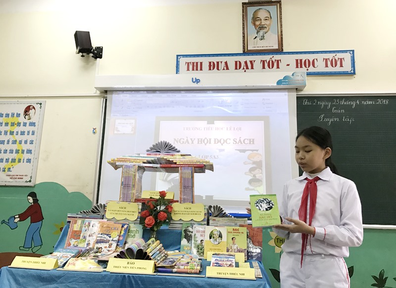 Hưởng ứng ngày sách Việt Nam hàng năm, ngoài tổ chức Ngày hội sách với hoạt động trưng bày, giới thiệu, quyên góp sách qui mô cấp trường, để tạo sự hứng thú cho cô và trò, mỗi năm, ngày hội sách ở Tiểu học Lê Lợi lại có hình thức tổ chức đổi mới, như: tổ chức hội thi kể chuyện giữa các khối lớp, trong toàn trường, thi vẽ tranh mô tả lại nội dung những câu chuyện các con yêu thích…