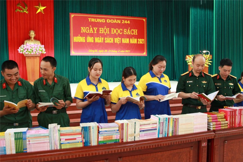 Sinh viên Đại học Hạ Long tham gia “Ngày hội đọc sách” hưởng ứng Ngày sách Việt Nam năm 2021 do Trung đoàn 244 tổ chức. Ảnh: Văn Đảm
