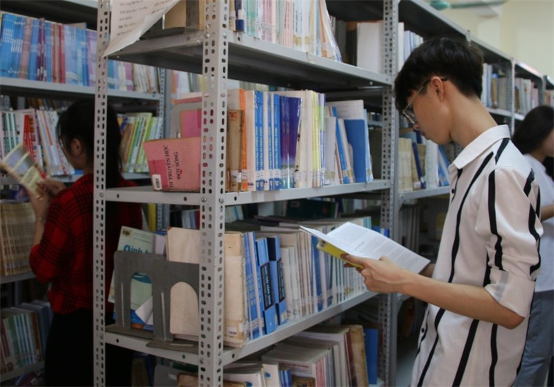 Sinh viên tìm đọc sách tại thư viện nhà trường.