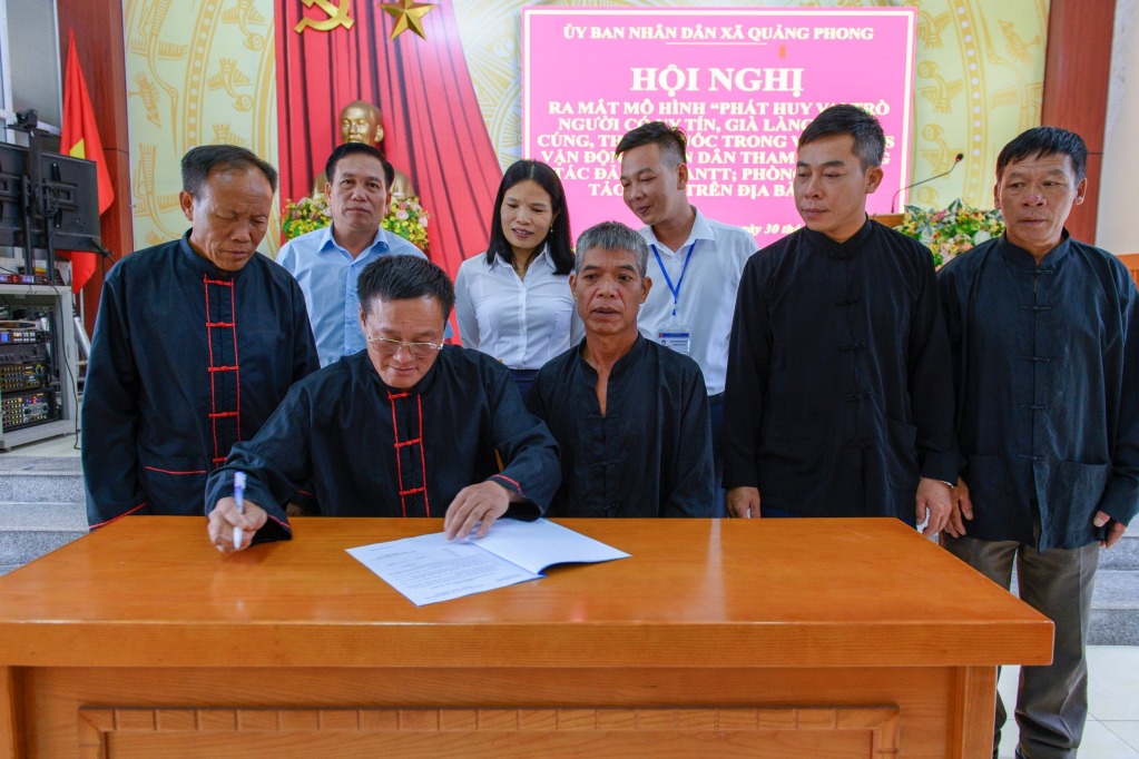 Xã Quảng Long (huyện Hải Hà) tổ chức ra mắt CLB Phát huy vai trò người uy tín, già làng, trường bản trong vận động người dân tham gia phòng, chống tảo hôn (tháng 10/2023).
