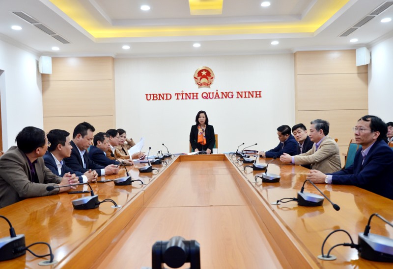 Đồng chí Vũ Thị Thu Thủy, Phó Chủ tịch UBND tỉnh, Chủ tịch Hội đồng xét duyệt hồ sơ khoa học xếp hạng di tích lịch sử - văn hóa và danh thắng tỉnh Quảng Ninh, phát biểu kết luận tại cuộc họp.
