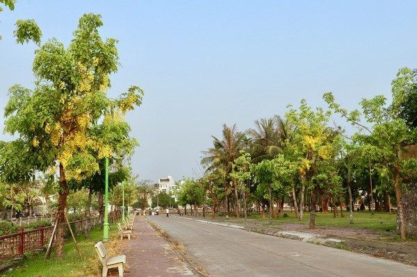 Cung đường từ kênh nước nóng Nhà máy điện vòng qua Biểu tượng thành phố rực vàng sắc muồng Hoàng Yến. Nơi đây trồng tập trung hơn 60 cây muồng Hoàng Yến.