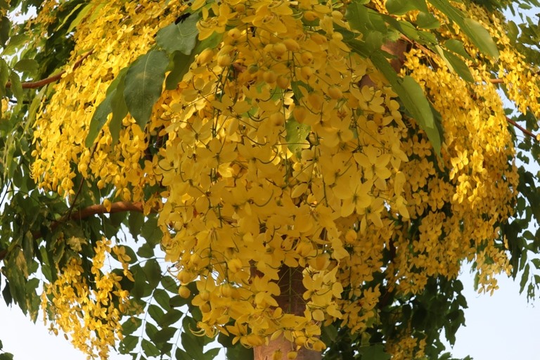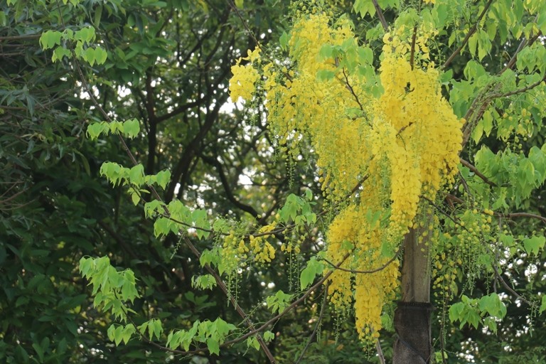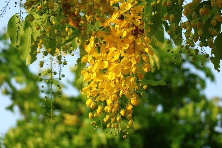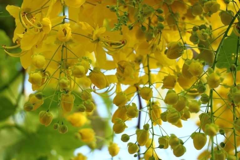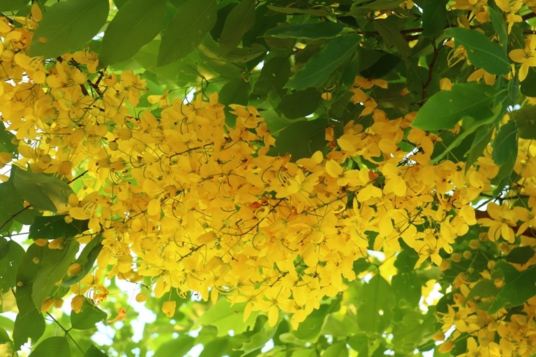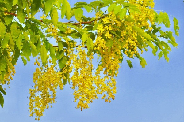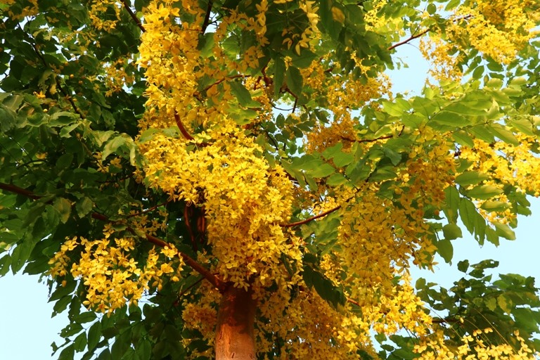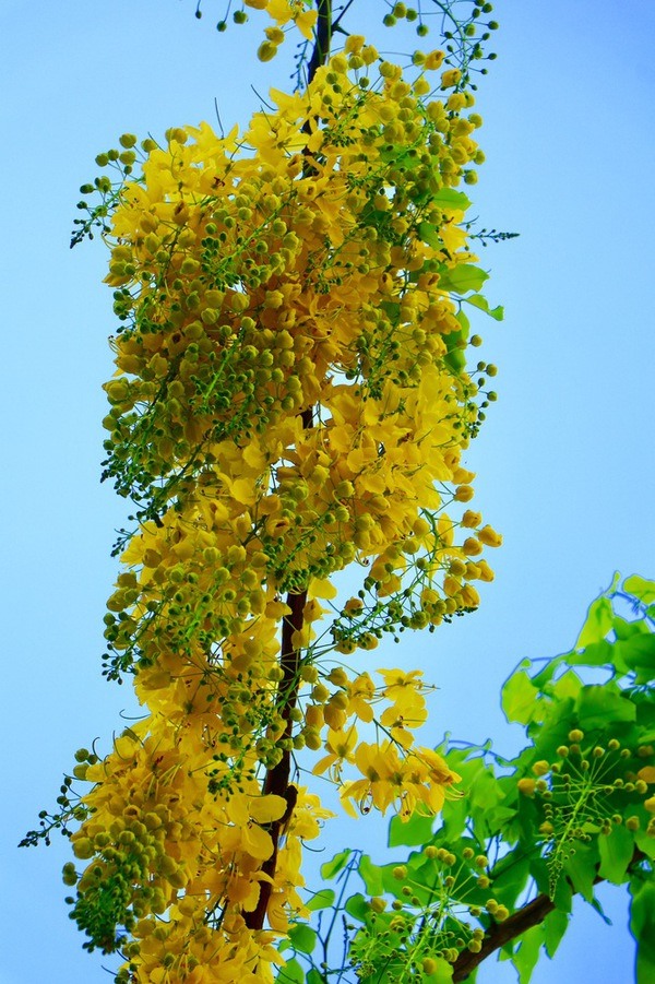 Muồng Hoàng Yến có đặc tính khá độc đáo, khi cây thay lá non cũng là lúc nụ hoa bung nở. Hoa nở rộ từng chùm, buông rủ đầy kỳ ảo.