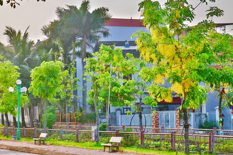 Sắc hoa khiến cho cung đường trở nên lãng mạn tựa như một bức tranh phong cảnh trữ tình.