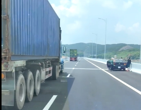Xe ô tô dừng, đỗ trên cao tốc Vân Đồn - Móng Cái.