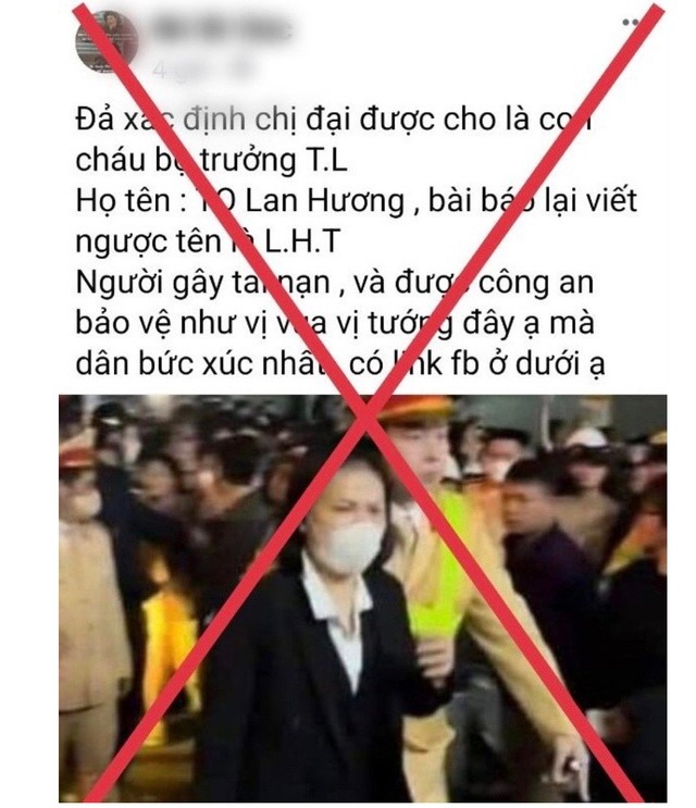 Qua công tác nắm tình hình không gian mạng, Phòng An ninh mạng và phòng chống tội phạm sử dụng công nghệ cao, Công an TP Hà Nội phát hiện một tài khoản facebook đăng tải thông tin liên quan đến vụ va chạm giao thông, xảy ra vào ngày 5/3, tại đường Trần Cung, quận Cầu Giấy, TP Hà Nội, với nội dung: "Đã xác định chị đại được cho là con cháu Bộ trưởng T.L. Họ tên: TO Lan Hương, bài báo lại viết ngược tên là L.H.T. Người gây tan nạn, và được công an bảo vệ như vị vua vị tướng đây ạ mà dân bức xúc nhất, có link fb ở dưới ạ".