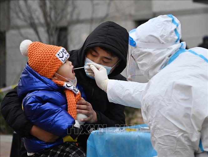 Nhân viên y tế lấy mẫu xét nghiệm COVID-19 cho một em nhỏ tại thành phố Thiên Tân, Trung Quốc ngày 9/1/2022. Ảnh: THX/TTXVN