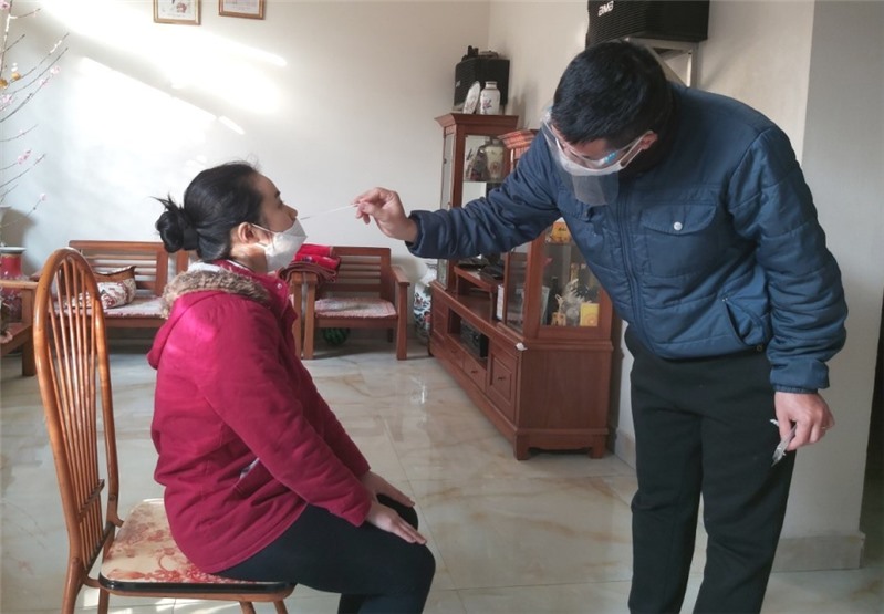 Người dân phường Hà Tu (TP Hạ Long) thực hiện test nhanh kháng nguyên SARS-CoV-2 tại nhà.