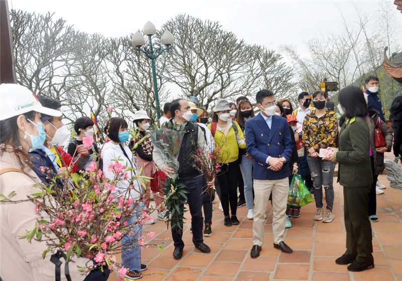 Du khách hành hương nghe giới thiệu về các giá trị của Yên Tử tại chùa Hoa Yên (Quảng Ninh), nằm trong quần thể di sản Yên Tử đang được đề cử.