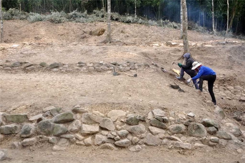 Các vật liệu xây dựng chùa Bảo Đài (TP Uông Bí) được xuất lộ qua khảo cổ.